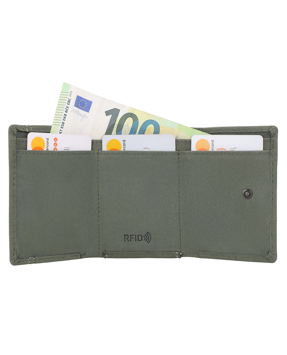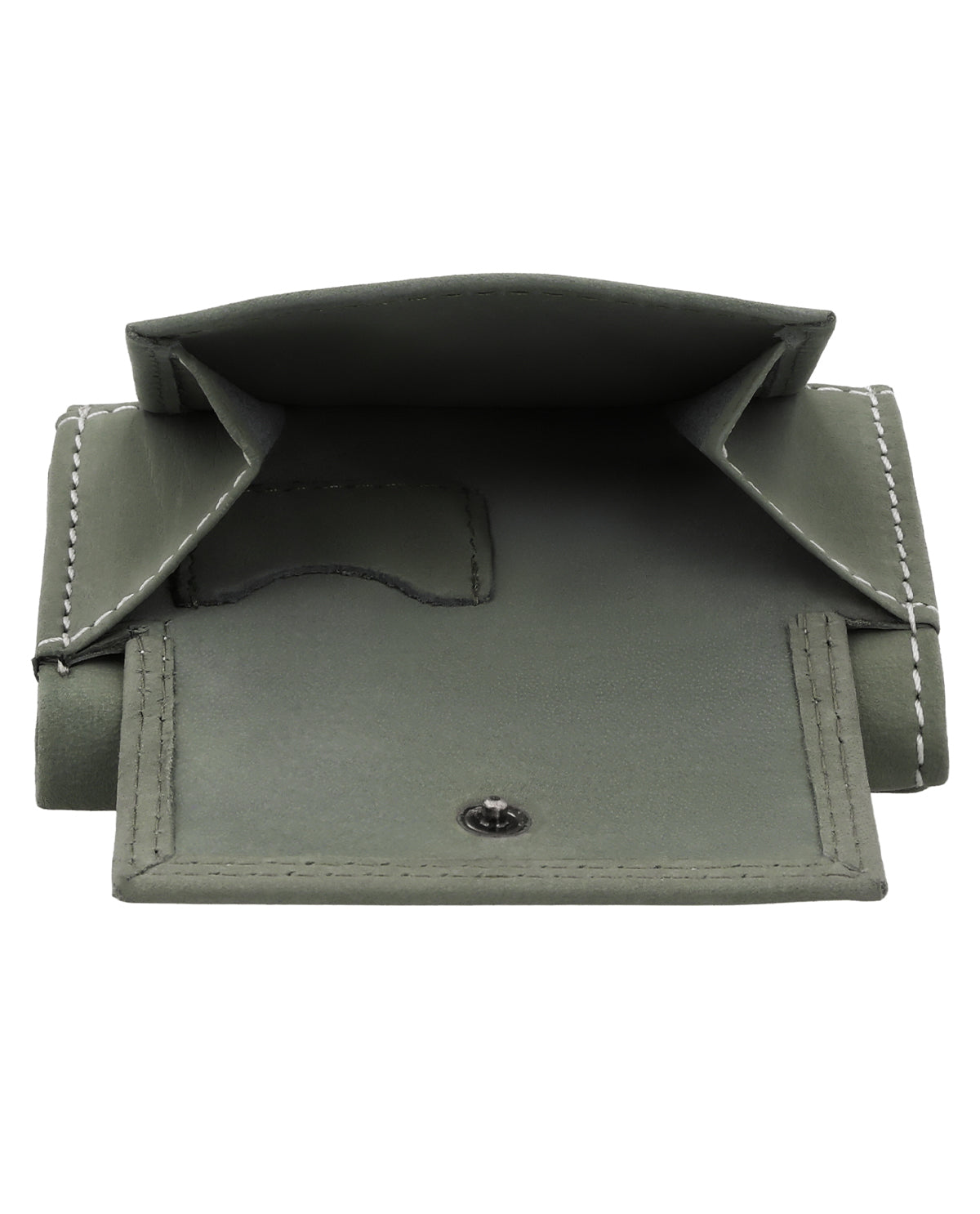 Inside he has 3 card slots, a note pocket, as well as a press-button-secured coin pocket on the front. Your cash and cards are safe and secure in “Ronald”. There's an extra pocket on the back for things you need easy access to.