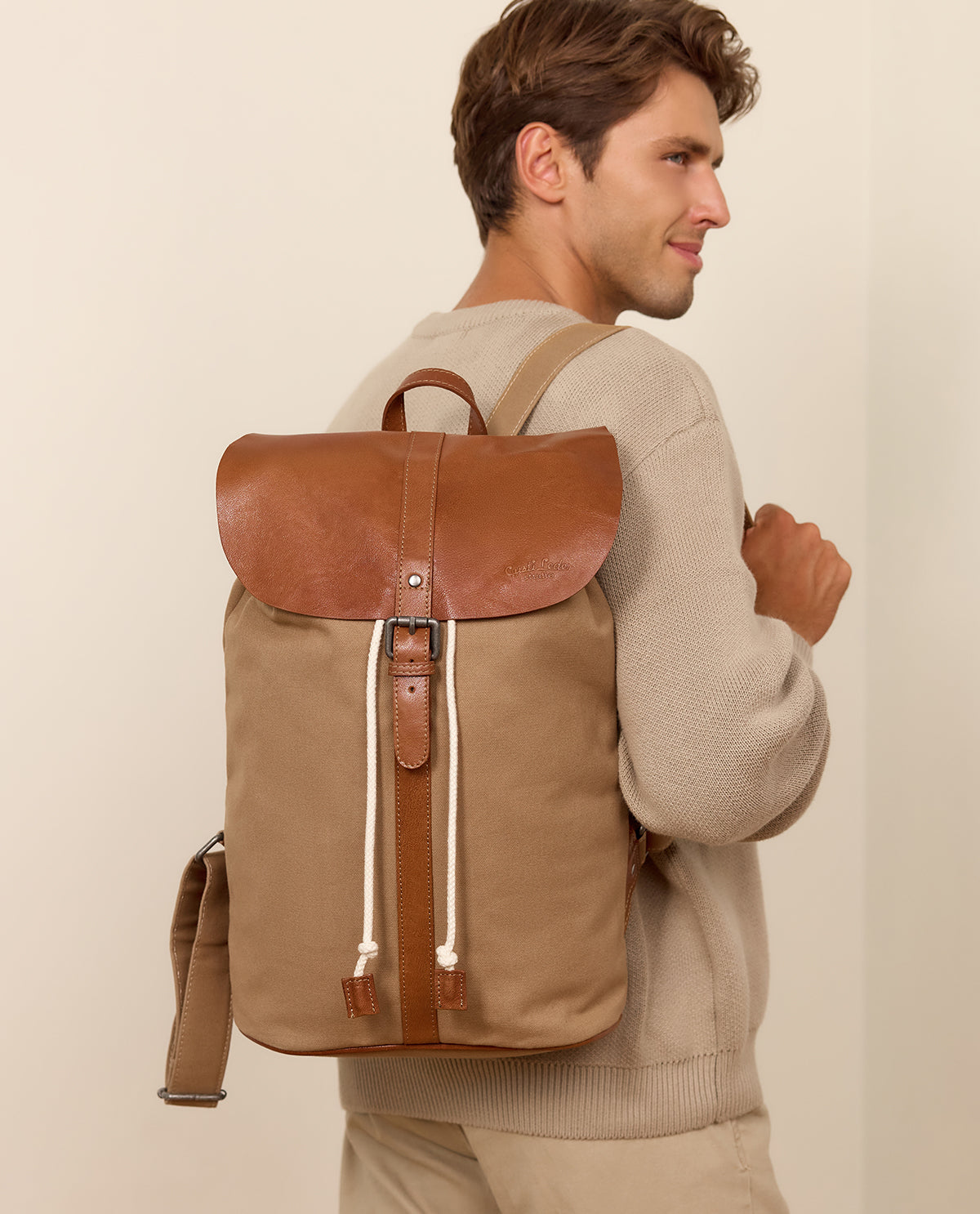 Backpack city backpack laptop bag laptop backpack leather backpack beige canvas & leather