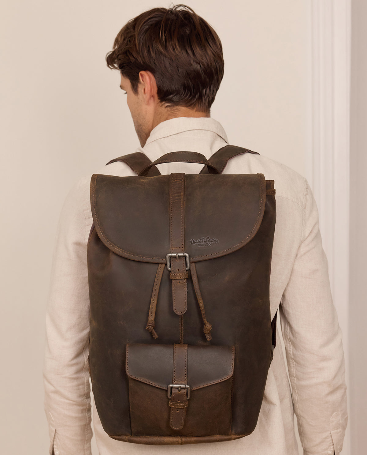 This spacious robust real leather backpack doesn’t just look good, it’s versatile and comfortable too! “Nolan’s” spacious main compartment has more than enough space for your 15-inch laptop, A4 folders and notebooks, etc., as well as for your hiking equipment and picnic. The drawstring and thorn-buckle-style snap lock mean that everything is kept safe and sound in your backpack, so you won’t lose anything when you’re on the go. There’s an extra zipped pocket inside which offers you extra storage space for your valuables, like your wallet, keys, etc. “Nolan” also has an extra patch pocket with a magnet closure where you can keep things you need quickly, like your tissues, sanitiser, gum, snacks, and more. “Nolan” is lined with water-resistant polycotton, while the back of the bag and the underside of the adjustable shoulder straps are padded with a colour-coordinated canvas, offering you extra comfort, no matter where you are.