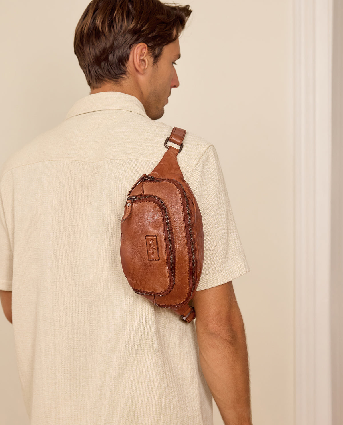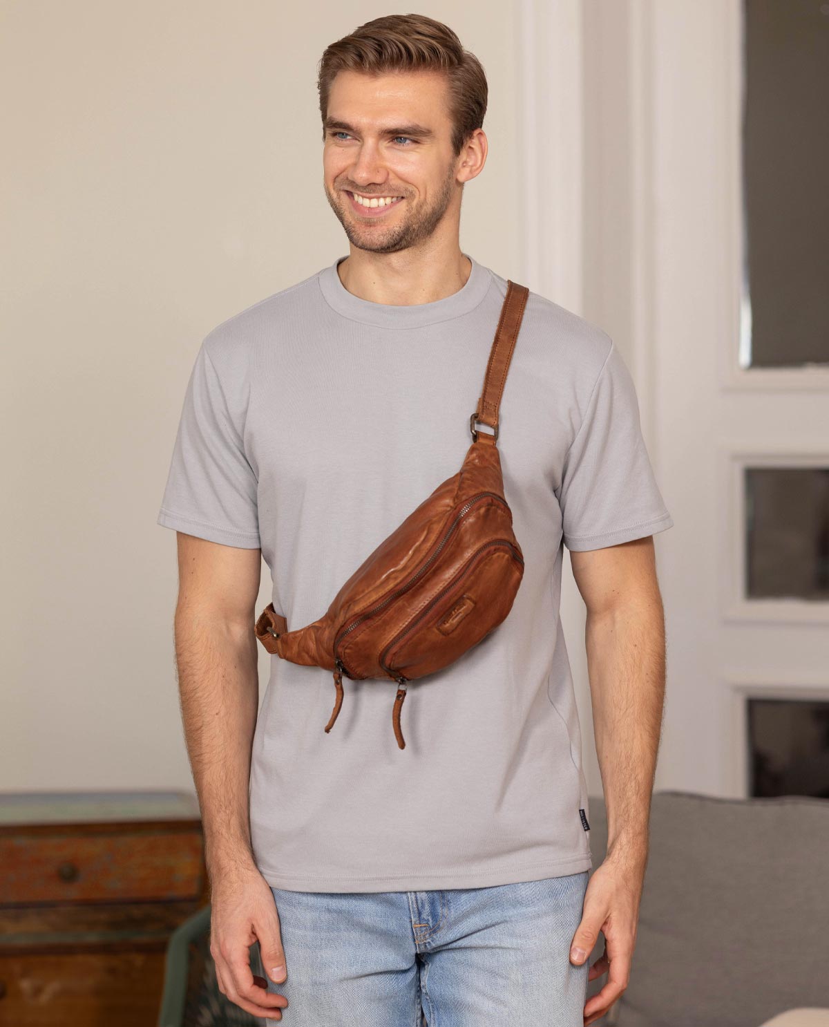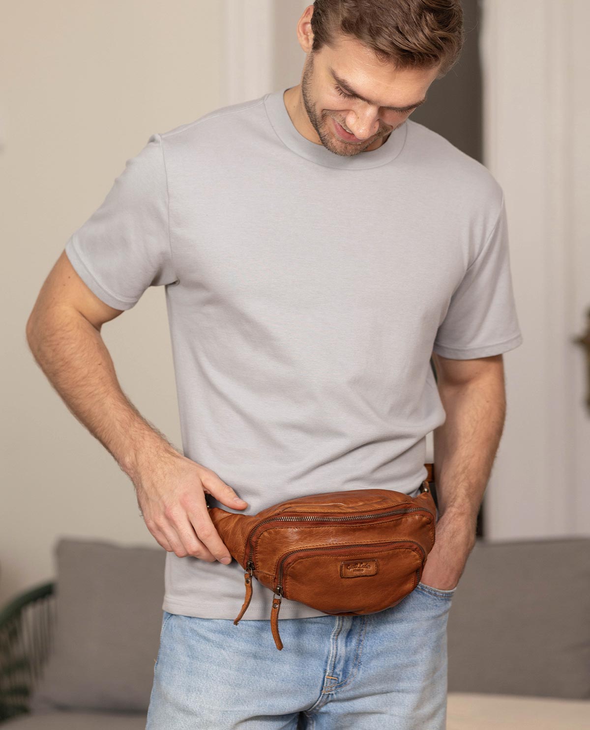 Are you looking for a cool belt bag that you can wear during festival season? Something handy where you can keep snacks or your essentials? Then “Sverre” is exactly what you've been looking for! This chic vintage bag is made from sturdy cowhide leather and always looks good. There's plenty of space in the large main compartment for your belongings. You'll find two zipped pockets on the front of the bag where you can keep your essentials. Bring on Coachella! But that's not all... This spacious belt bag can be used all year round. Keep your wallet, keys and phone safe at concerts during the winter months.