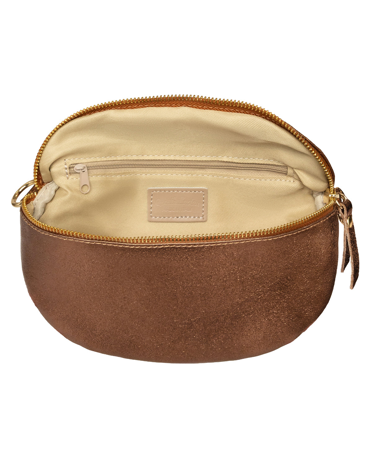 The "Brinja" shoulder bag impresses with its elegant design and high functionality. With the distinctive, semi-circular silhouette and the full zipper along the top edge, it not only offers ample space for your essentials but also security for all your personal belongings. The high-quality leather gives it a noble look that perfectly fits into your modern everyday life. Inside, you'll also find the finely embossed "Made in Italy" logo, which impressively underscores the origin and quality of this bag.