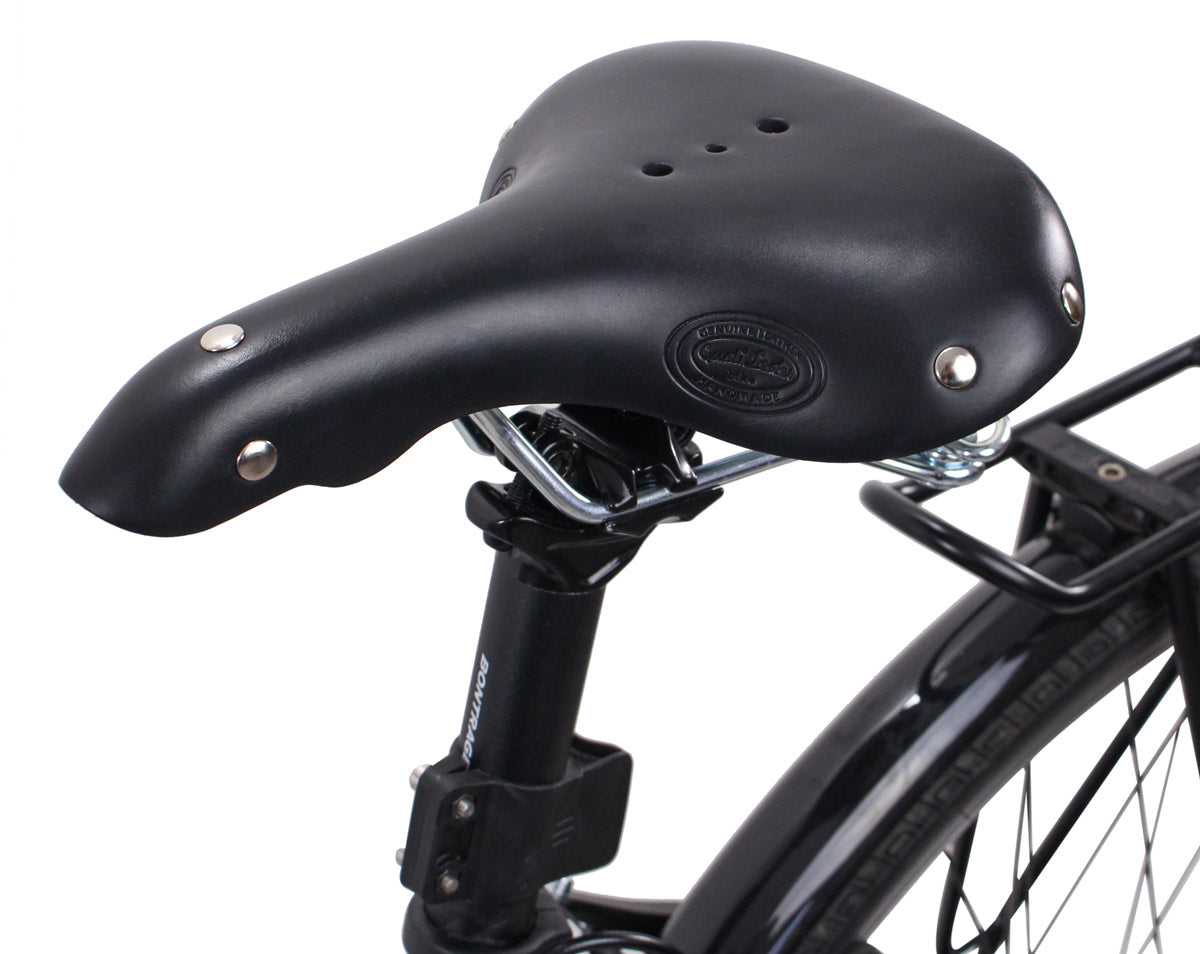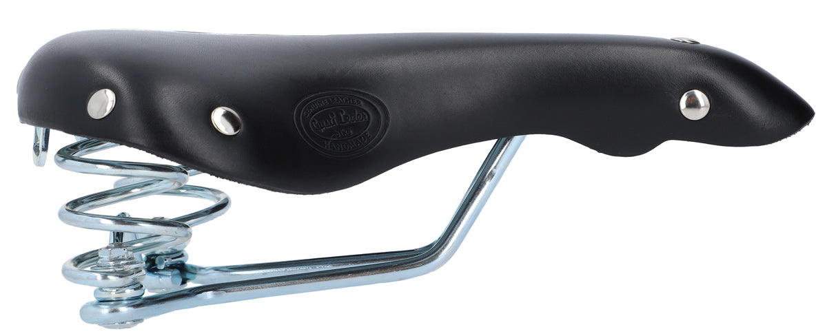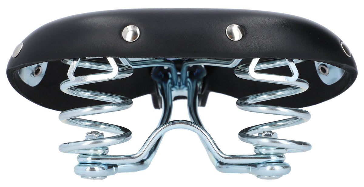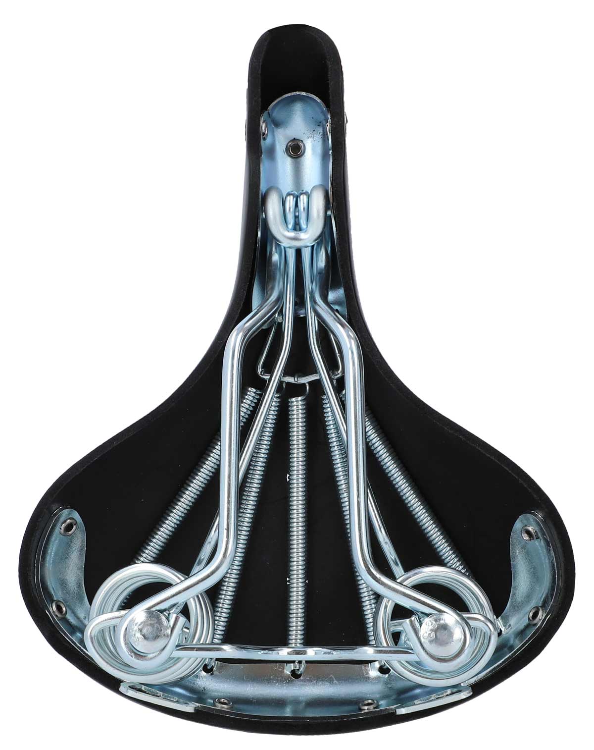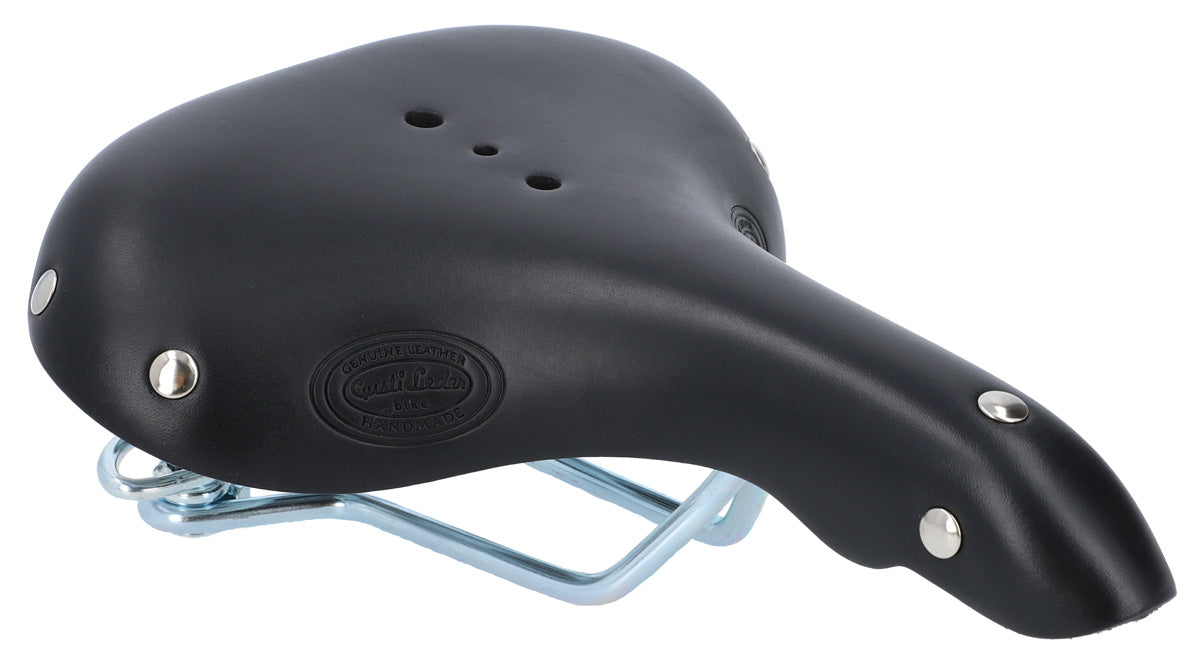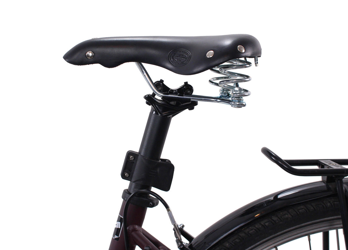 Thanks to its special shape with a narrow shaft and wide seating area, "Mark C." optimally distributes body weight and ensures pressure relief – whether you are riding sporty or relaxed. The metal springs guarantee additional comfort and effective shock absorption. The high-quality cowhide leather makes the saddle 100% breathable, so you don't risk a sweaty bottom even on long distances. And unlike PVC saddles, "Mark C." remains free from cracks and material fatigue even after years. Get on your bike and explore the world – with maximum riding fun from the start!