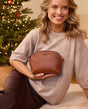 This stylish, sturdy brown cowhide leather handbag perfectly combines a flat-bottomed half-moon shape with an eye-catching gold two-way zipper, making "Tilda" easy to pair with any outfit and suitable for all occasions and events. "Tilda" even has an extra security feature – an internal zipped pocket that's integrated into the bag's striped lining for your keys, phone, or small purse, keeping your belongings safe from pickpockets.