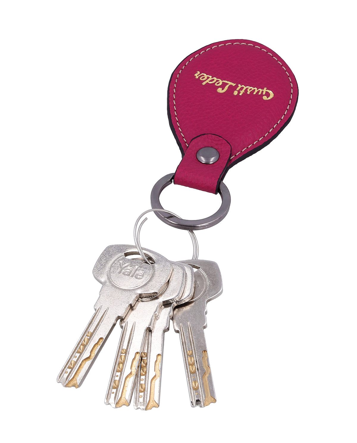 Keyring key strap leather charm women men pink leather
