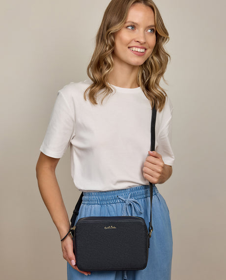 Please note: You can use a total of 30 characters, max. 15 per line. The exact colour of the engraving may vary slightly depending on the product and leather. The white text that you can see in the preview is solely for visibility and contrast, so you can better imagine how your engraving will look. If you only see a patch in the preview, the text of your choice will be engraved on a leather patch that will be sewn inside the bag. If you see the product in the preview, the engraving is positioned as shown in the preview image.