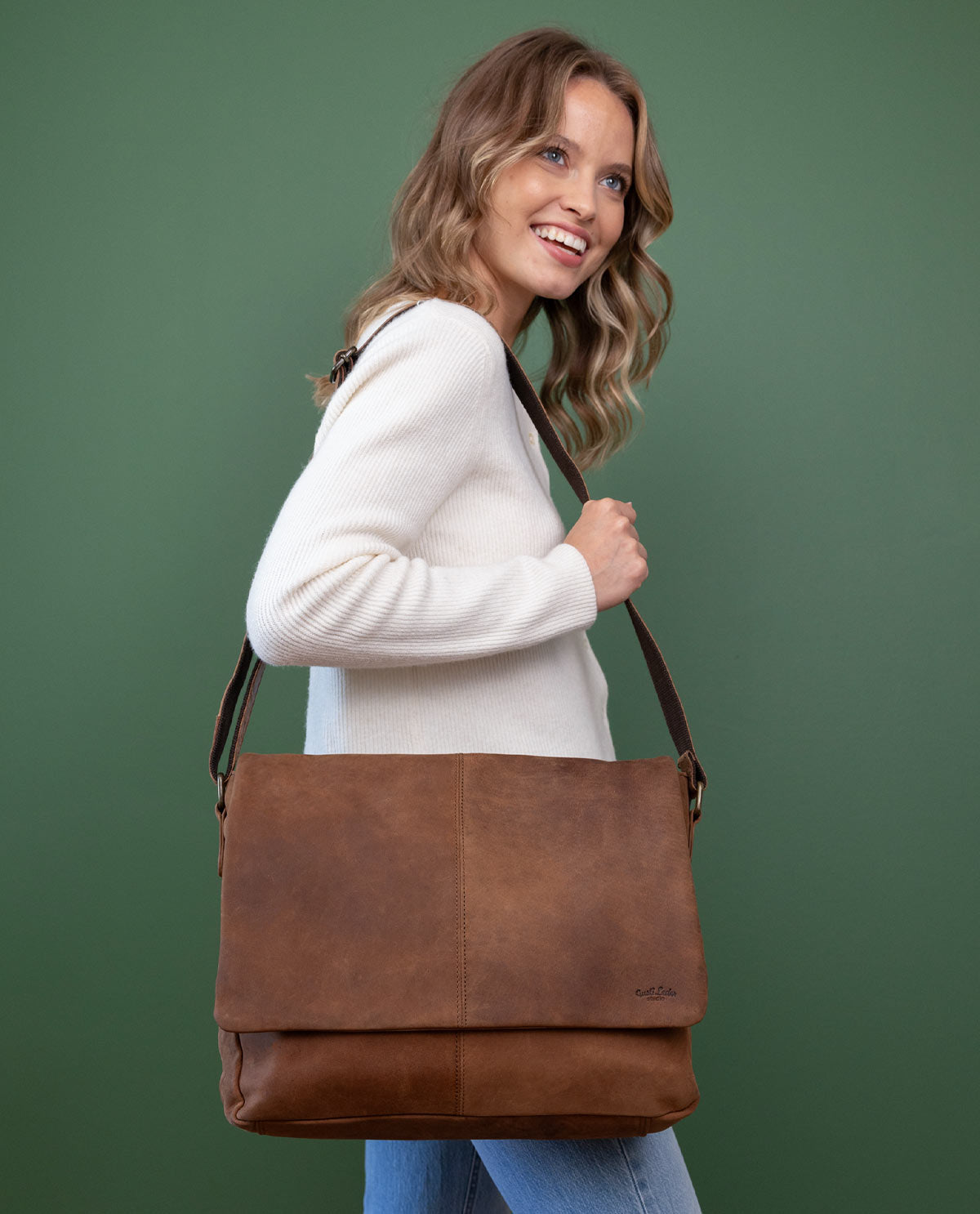 Our crossbody bag is made from high-quality, robust leather. The durable material gains character over time and develops a unique patina. Each bag is handcrafted and has its own individual features, making it a unique one-of-a-kind piece. The brown colour gives the bag an authentic vintage look that perfectly complements any outfit. Additionally, the bag offers ample storage space: the main compartment is large enough for a tablet, a notebook, or important documents. Two interior pockets and a zippered pocket provide organisation, while the adjustable shoulder strap ensures optimal carrying comfort – whether worn casually over the shoulder or crossbody.