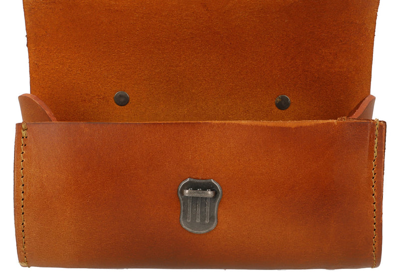 There's plenty of space in “Marti's” main compartment. The high-quality buffalo leather used to create this bag makes it sturdy and stable. Secure “Marti” to your saddle using the two straps provided and hit the road!