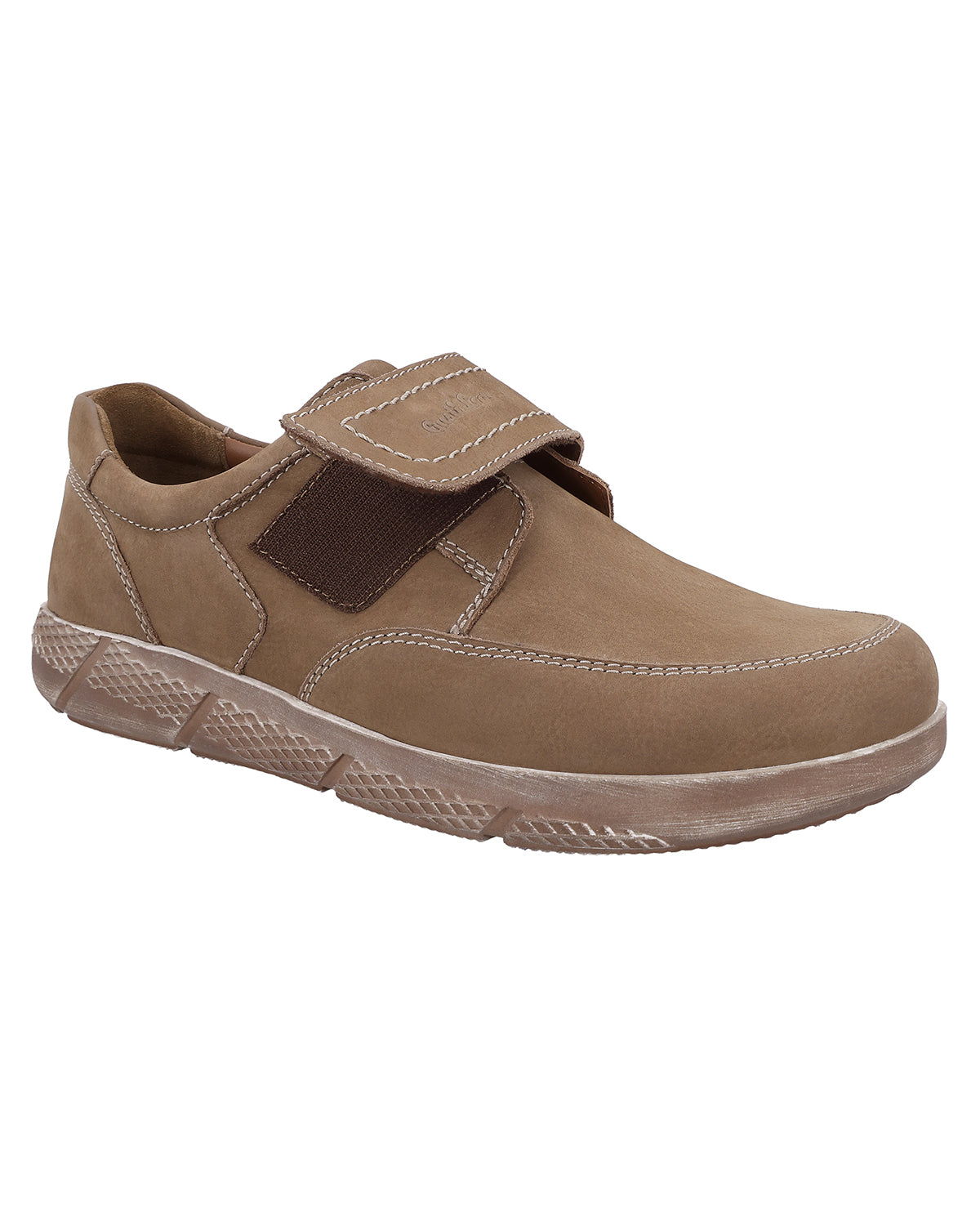 Inside, you'll find a smooth brown lining and a softly padded insole with Gusti Leather print that cushions every step comfortably. Decorative stitching on the heel and sides gives "Vito" additional structure, while the large Velcro fastener ensures optimal support and flexibility. The Gusti Leather logo embossed on the strap adds an elegant accent and rounds off the design. With "Vito," you are choosing leather shoes that harmoniously combine style, everyday practicality, and comfort.