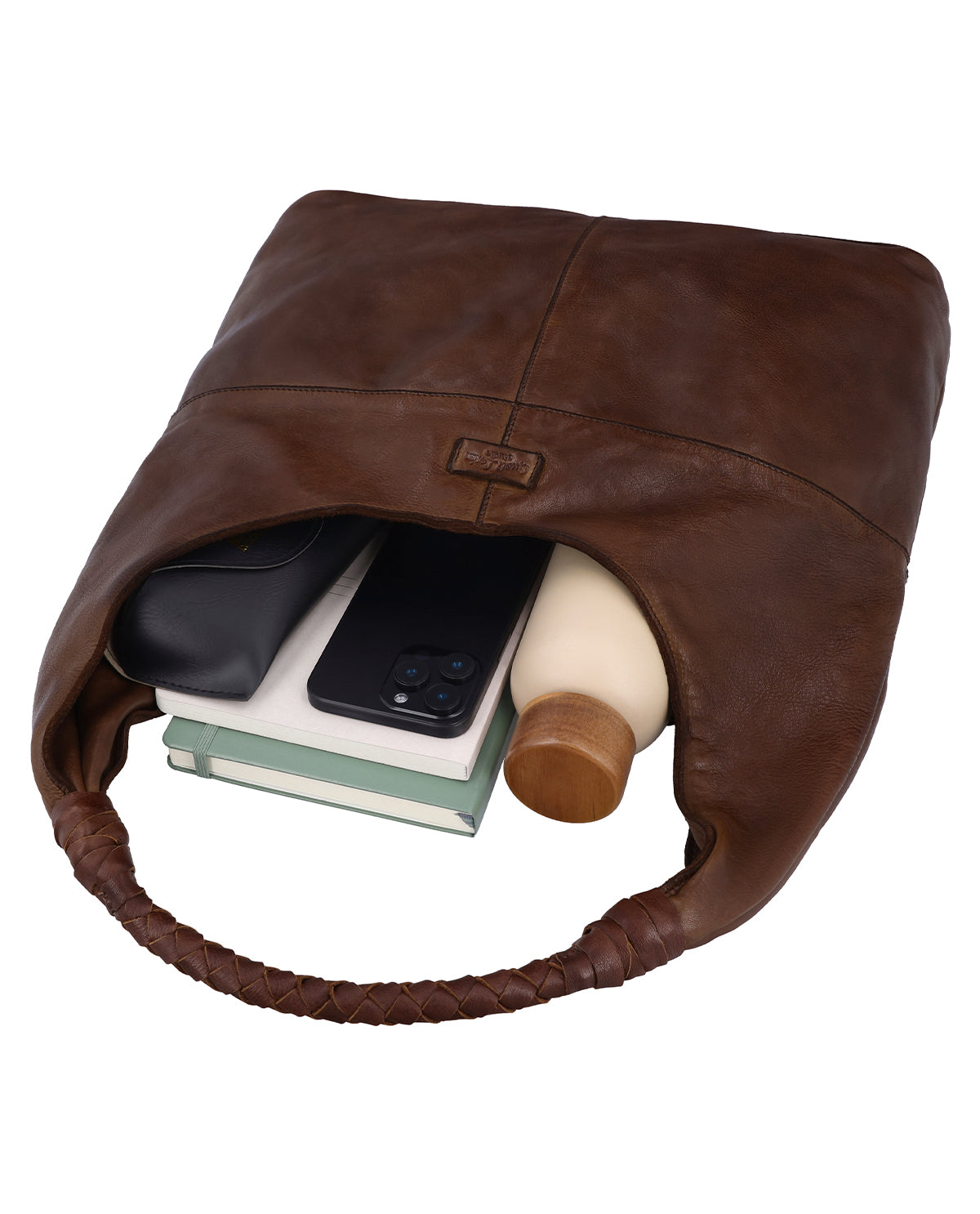 "Giulia" accompanies you with timeless elegance through your daily life. Made from high-quality leather, it impresses with a smooth feel and a clear, modern shape that works both as a shopper and a shoulder bag. Thanks to its uncomplicated magnetic closure, you can quickly open and close the bag – ideal for city strolls, the office, or spontaneous errands. A subtle zippered pocket on the outside offers you additional storage space and quick access to important items like keys or tickets.
