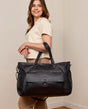 Our black leather duffel bag isn't just chic, it's practical too. It comes with an adjustable shoulder strap so you can carry it over your shoulder or across your body. The sturdy zips ensure that your belongings are kept secure and the leather handles give you an alternative way to carry this bag.