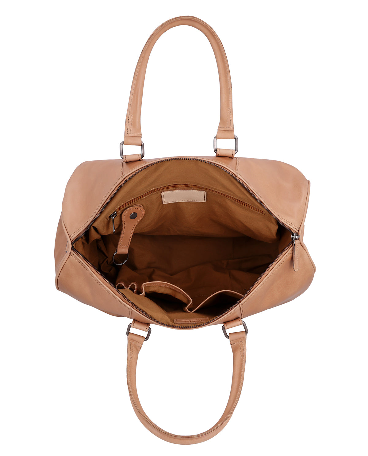 The brown leather "Joris" travel bag is designed for men and women who want to stay organized when on the go. As a high-quality leather travel bag, it combines classic design with smart extras that really count when traveling. A hidden AirTag compartment provides additional security, while a removable key ring keeps your most important items within easy reach. The separate wet compartment with water-repellent lining is particularly practical – ideal for storing worn clothing separately. "Joris" is a leather bag that keeps things tidy and noticeably reduces your workload when you're on the go.
