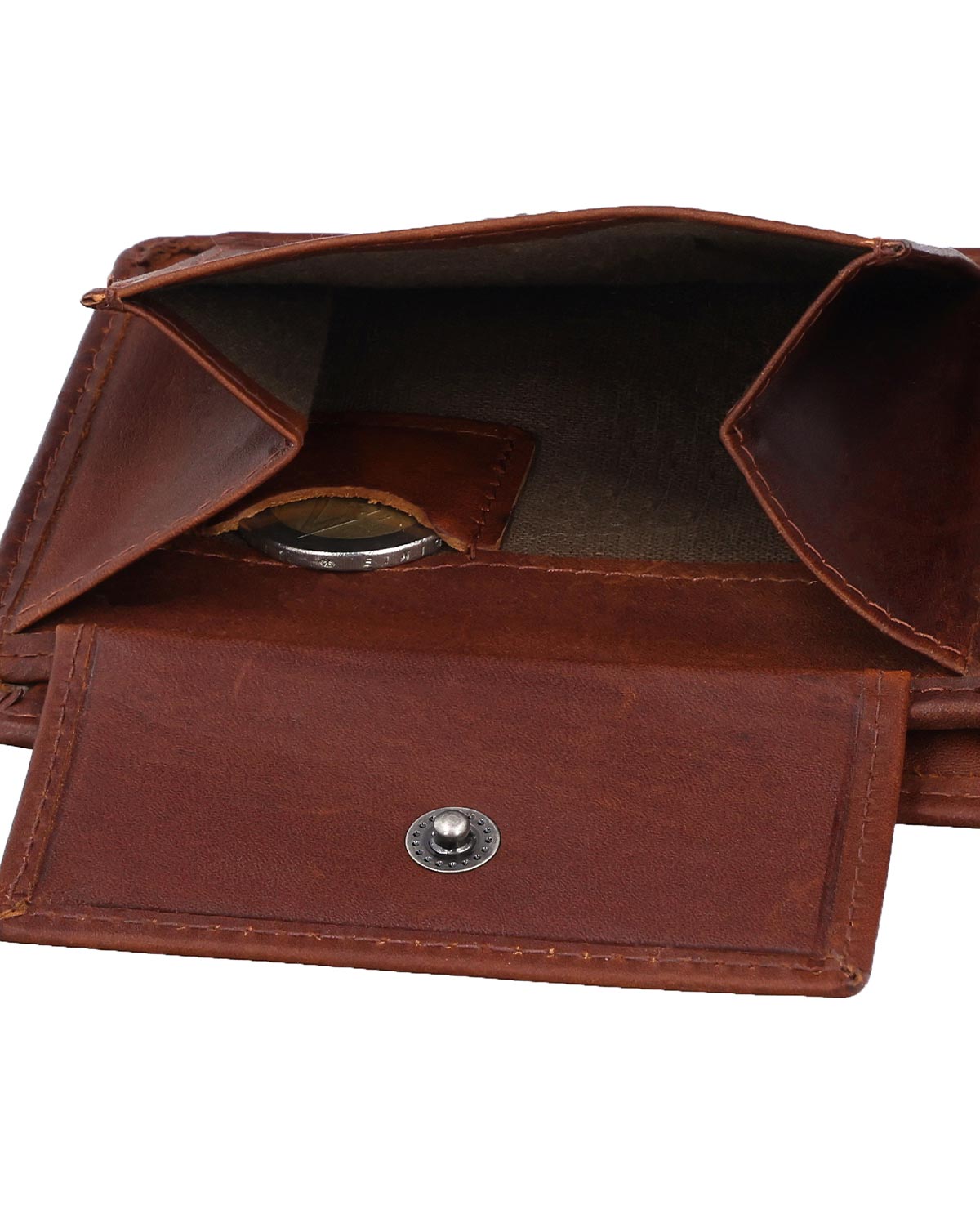 You'll find an organised layout inside—there's space for cash in the two note compartments, coins in the press-button-secured coin pocket, and 11 cards in the card slots. We've integrated a compartment that folds out with a large viewing window so you can keep your I.D., driving licence or photos safe. “Pawel RFID's” size is another nice-to-have, it's the perfect size for your vehicle papers without having to fold and crease them.