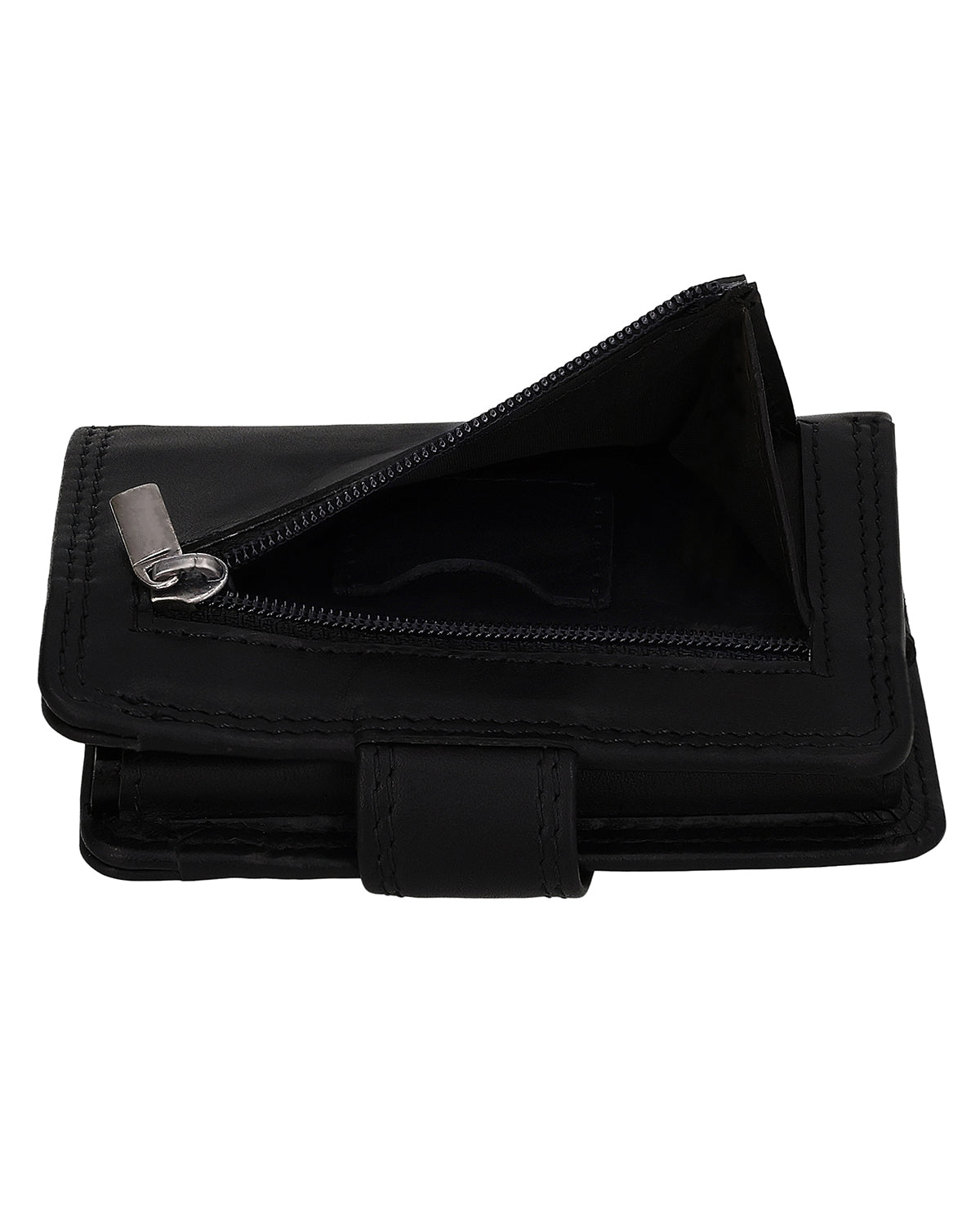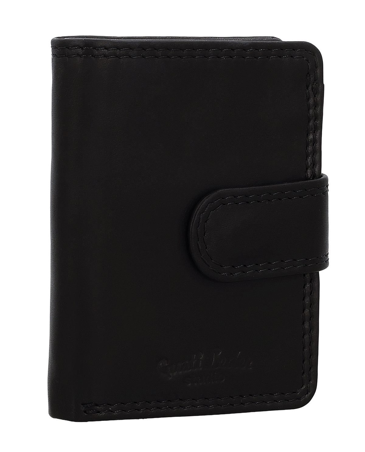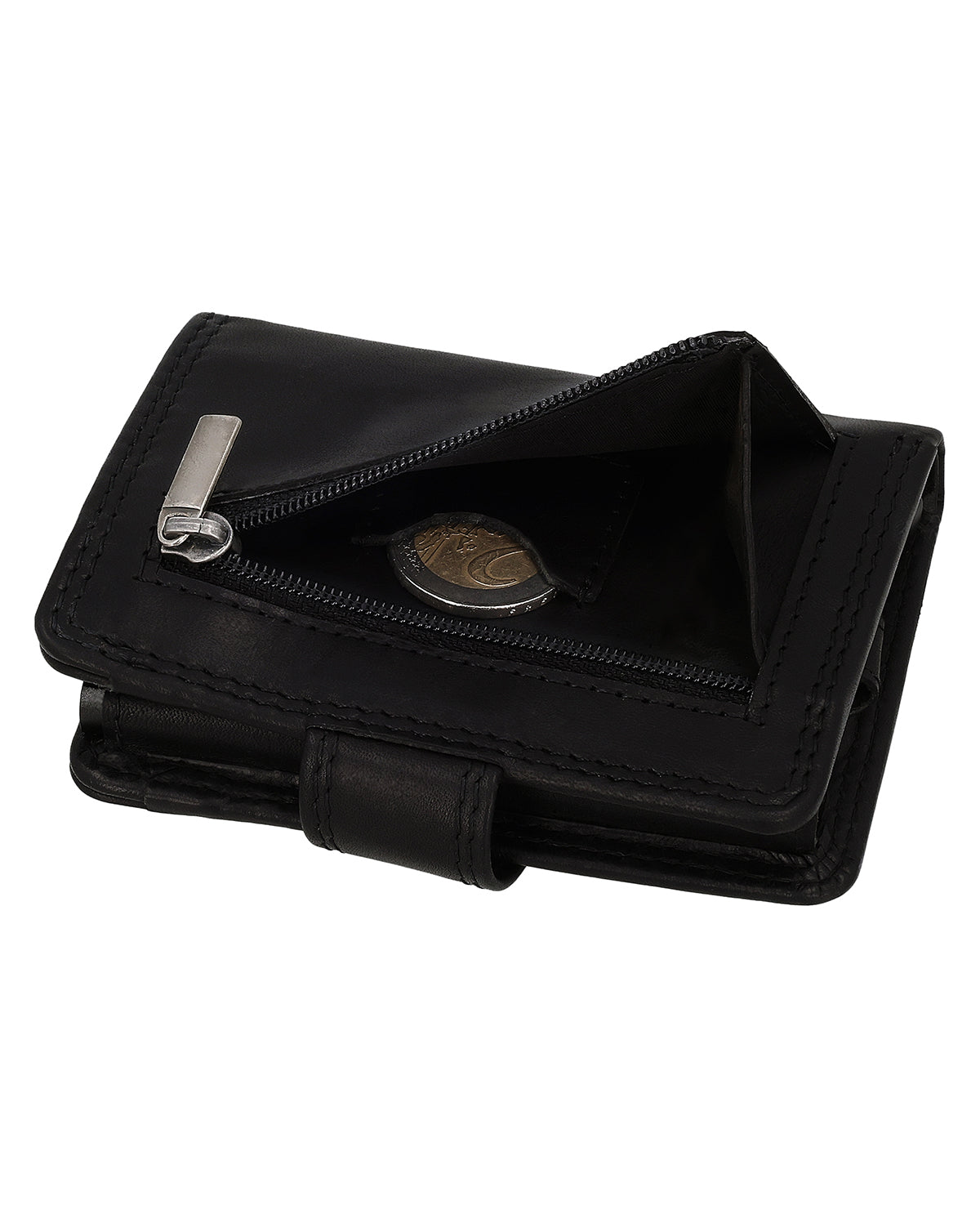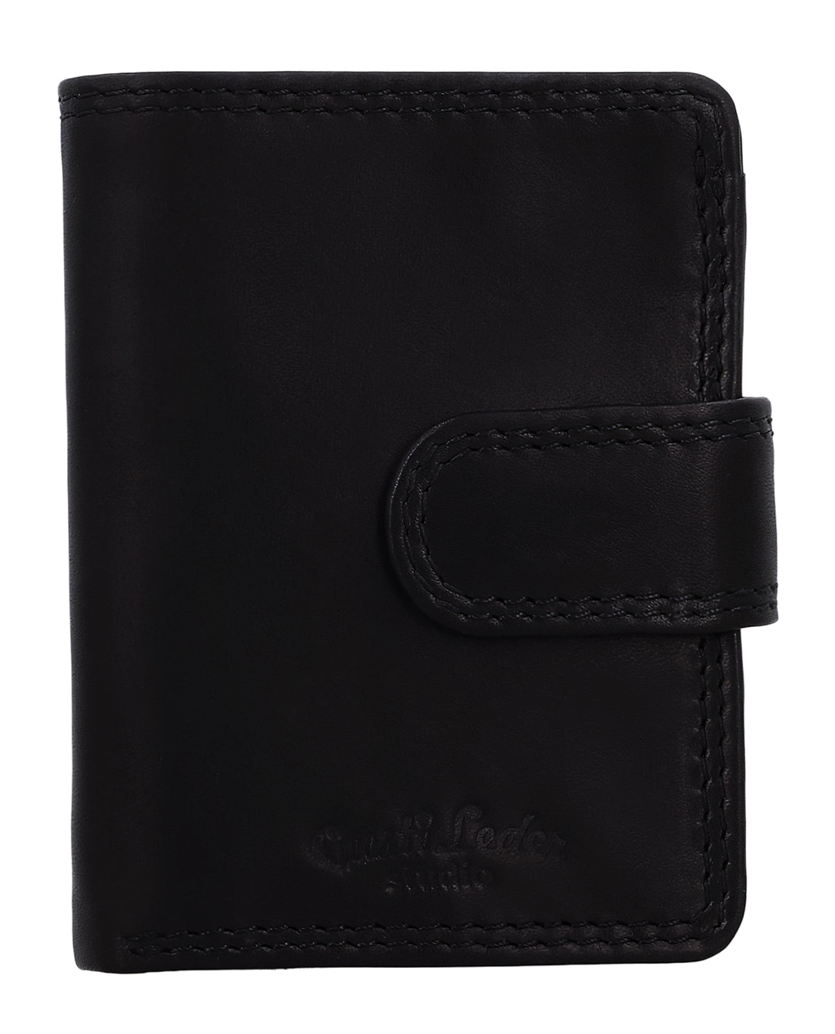 The black "Matheo" wallet is a men's wallet that combines security and functionality in a compact format. Integrated RFID protection safeguards your cards from unwanted scanning, while the aluminum card holder with pop-up mechanism allows quick access to your most important cards. The magnetic strap closure keeps everything securely together and emphasizes the clean, modern design. The double stitching provides additional stability and a high-quality look.