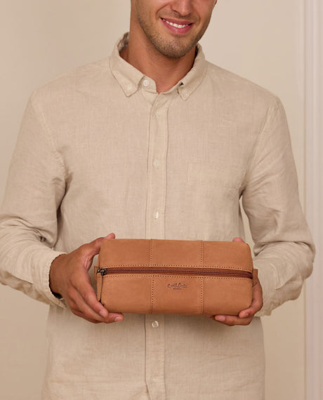 Goatskin toiletry bags are initially somewhat stiffer, but with regular use, they quickly become very supple and soft. Models made of cowhide or buffalo leather, on the other hand, are somewhat more dimensionally stable due to the naturally stronger material. Even after some time, this leather still feels somewhat firmer, although these bags will naturally soften somewhat.